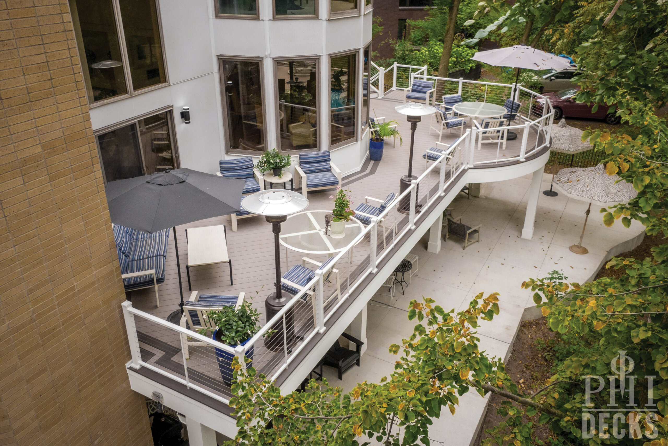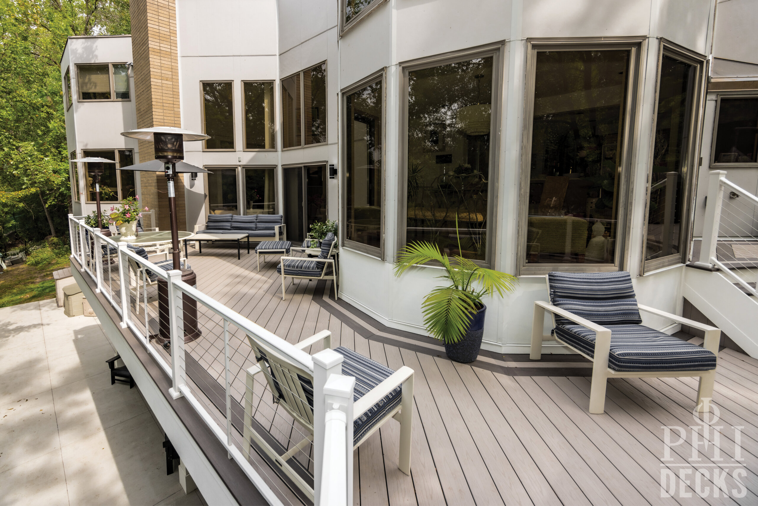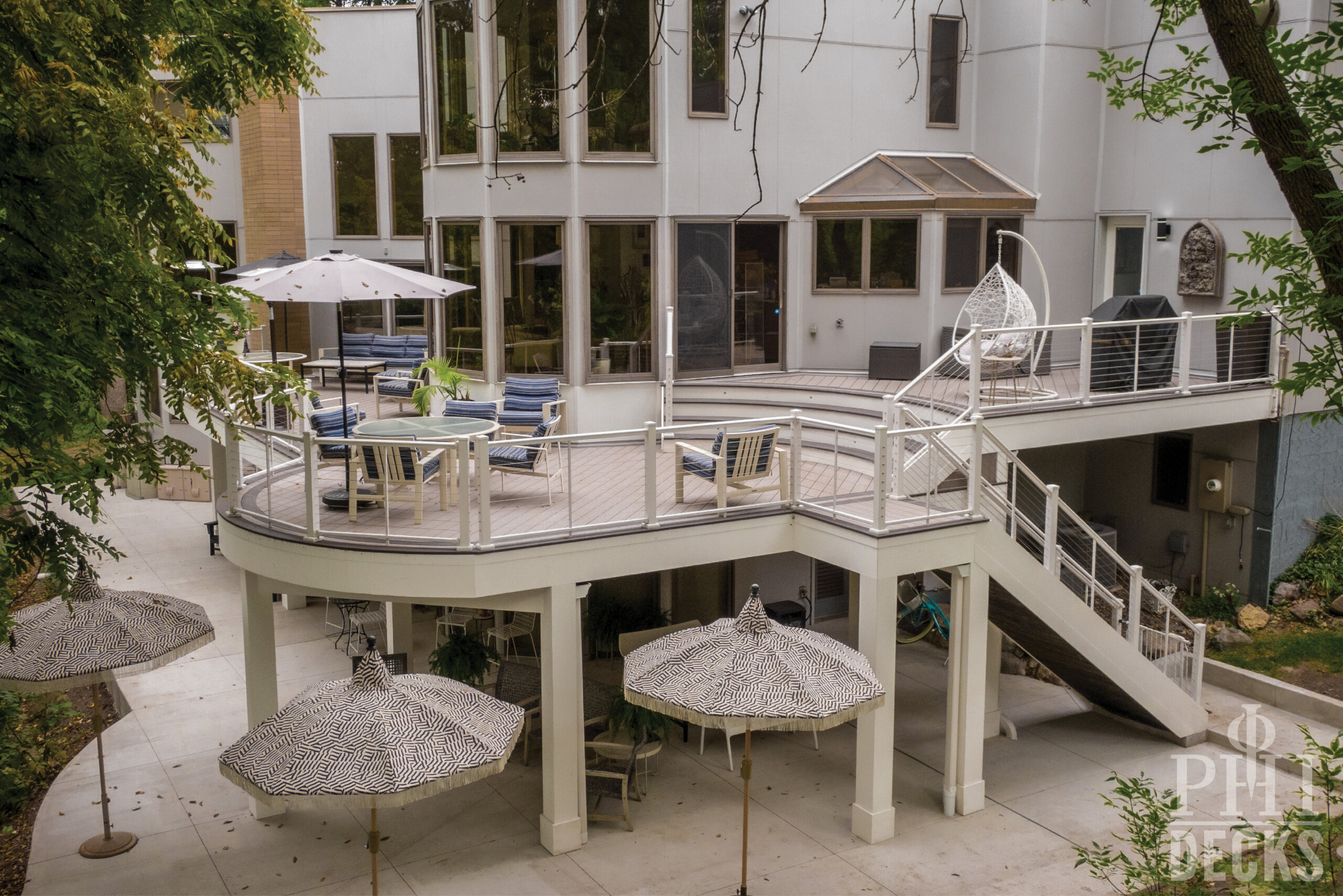 Low maintenance materials were selected to ensure long term performance without sacrificing appearance. The decking provides a clean, refined surface underfoot, while aluminum railing offers safety and durability with a minimal visual footprint, allowing the surrounding wooded views to remain the focal point.